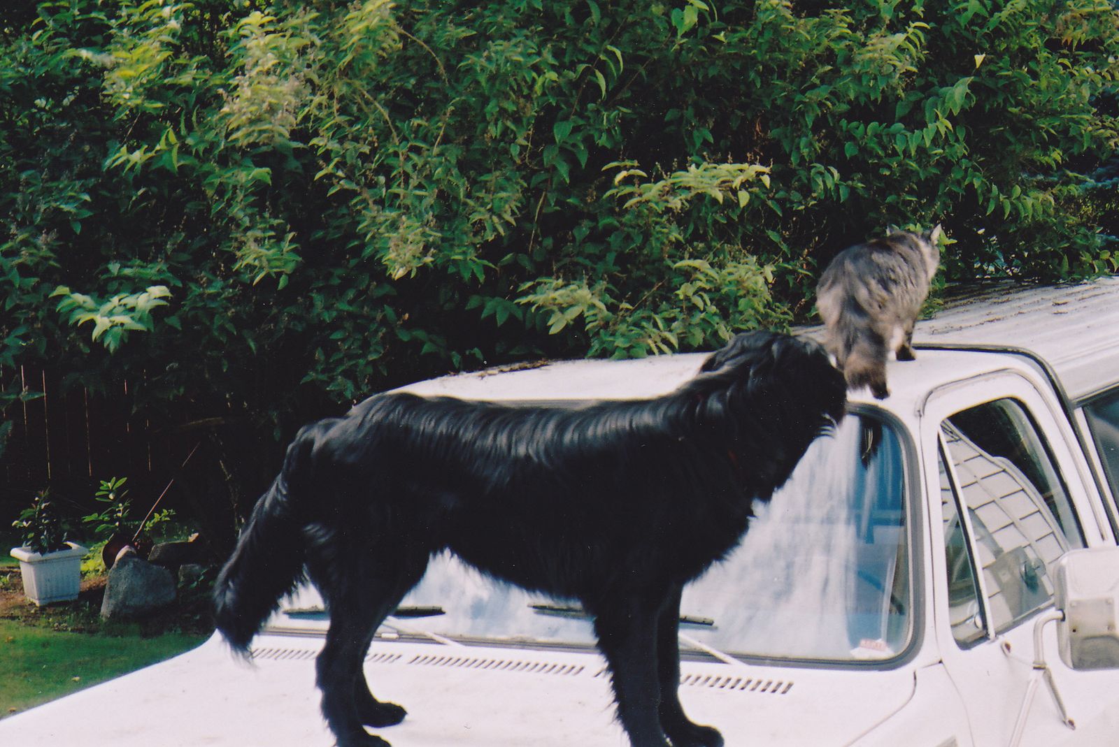 Yes, he's standing on the hood of Dan's truck (known as 'bigwhiteugly') and that is Oscar trying to get away. I learned A LOT working with Chevy but eventually with my vet's intervention, he was rehomed.