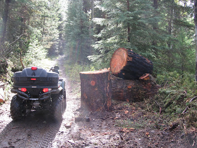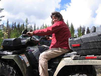 Well, I actually got to ride the ATV this trip and let me tell you - I gotta get me one of these! What fun. Dan gave me five seconds of directions on how to accelerate, stop, shift. Good to go from there. Your right thumb works the accelerator - seems simple enough.