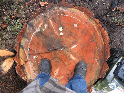 When Dan was out on the bike he took some pictures of the tree. In this one Dan is standing on a piece of the wood - his size 9's look pretty small here.