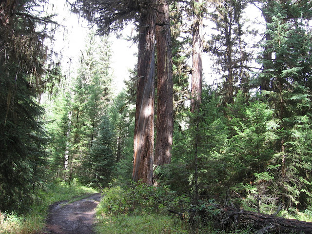 If you look closely at this picture, you will see the bark is missing in a twisted fashion. This tree was hit by lightning too: