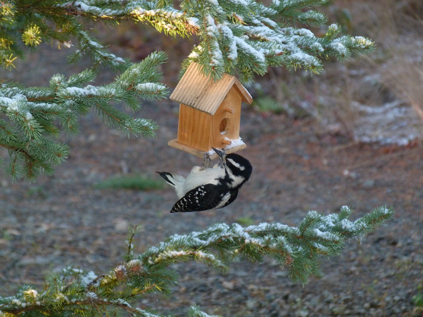 Well, the birds (and if you can believe it, we had bees even when the temp was near or below zero) were hanging out with us. We had a black and white woodpecker who was checking out our decorative birdhouses.