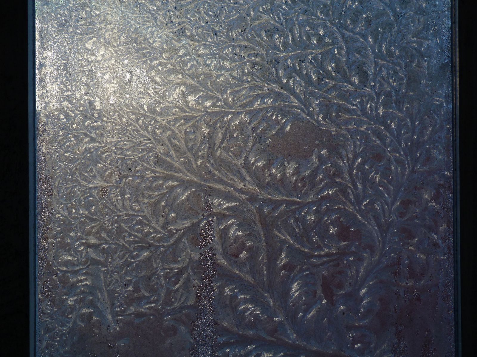 We had a bit of snow but nothing special. We did have a cold snap though and look at the design of the ice on this window: