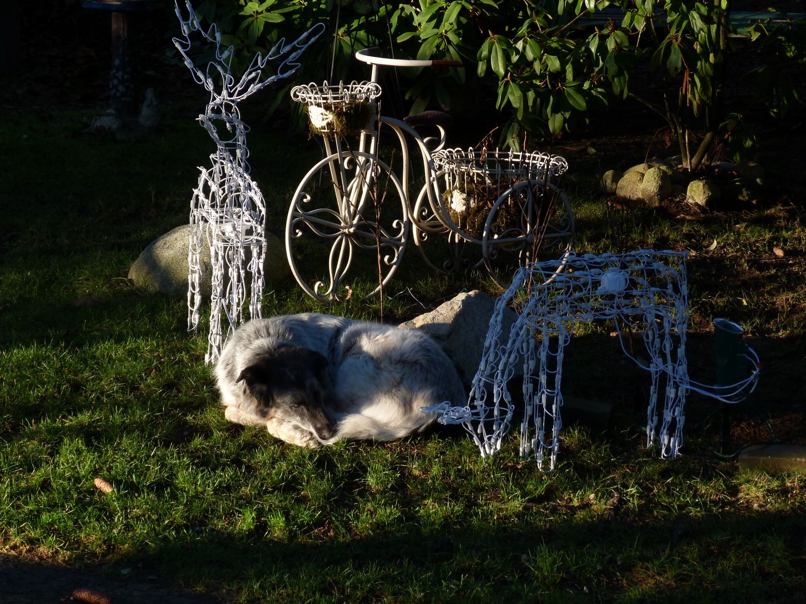 It was dry out and we got a few outdoor decorations put up, not as much as usual though. Brooke thought she had some friends move into the neighborhood: