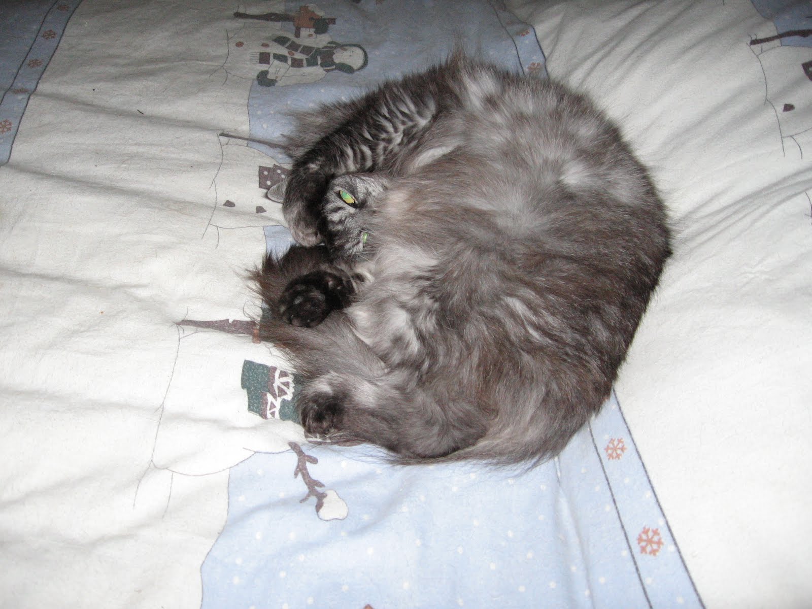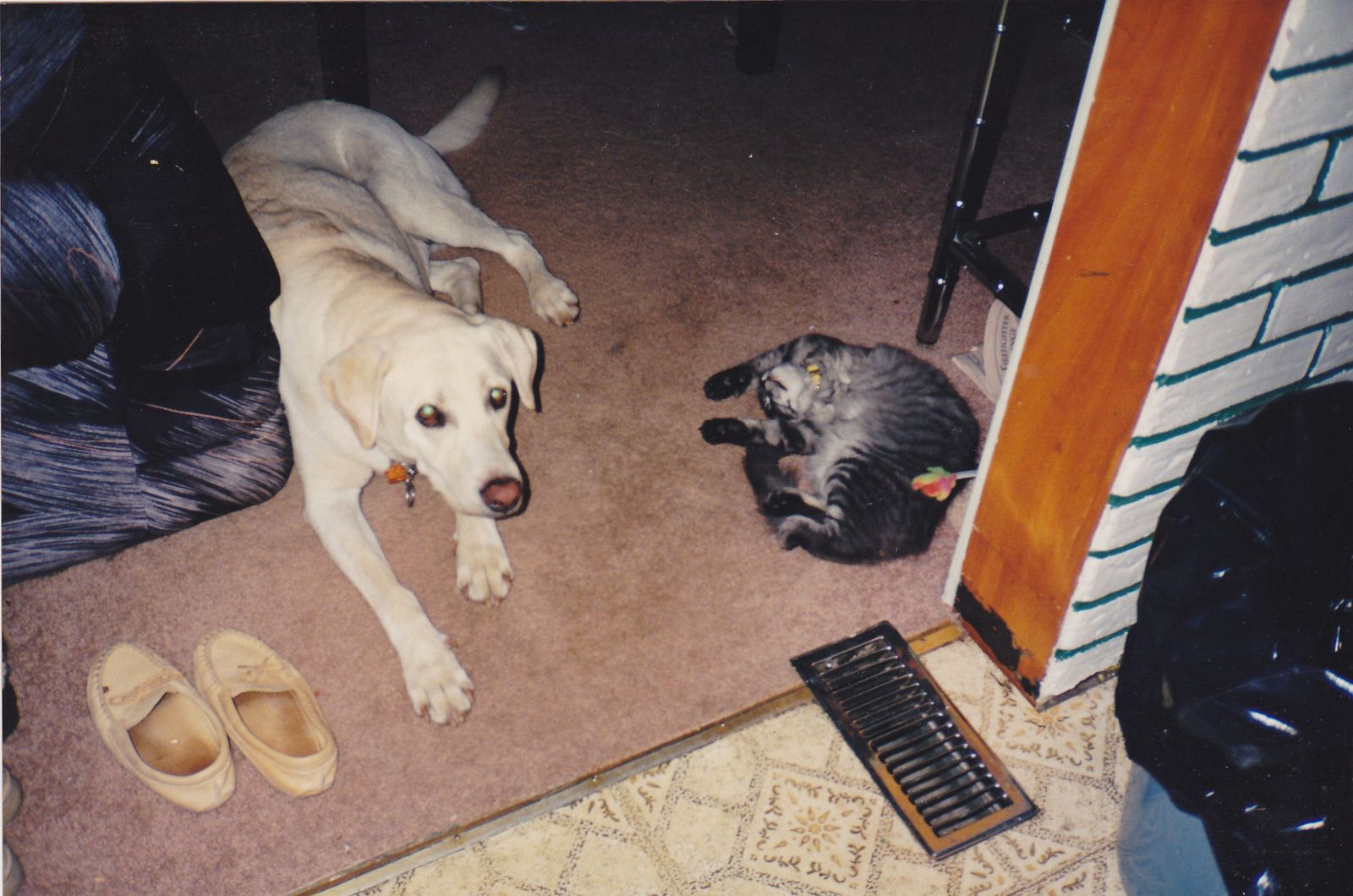 As posted earlier, Ceasar toughened him up as a kitten. They used to drive me up the wall in the evening chasing each other through the house, round and round, and then down for a nap: