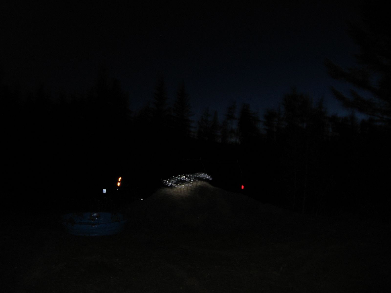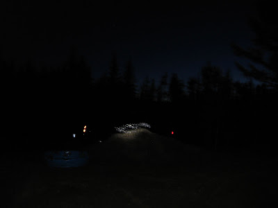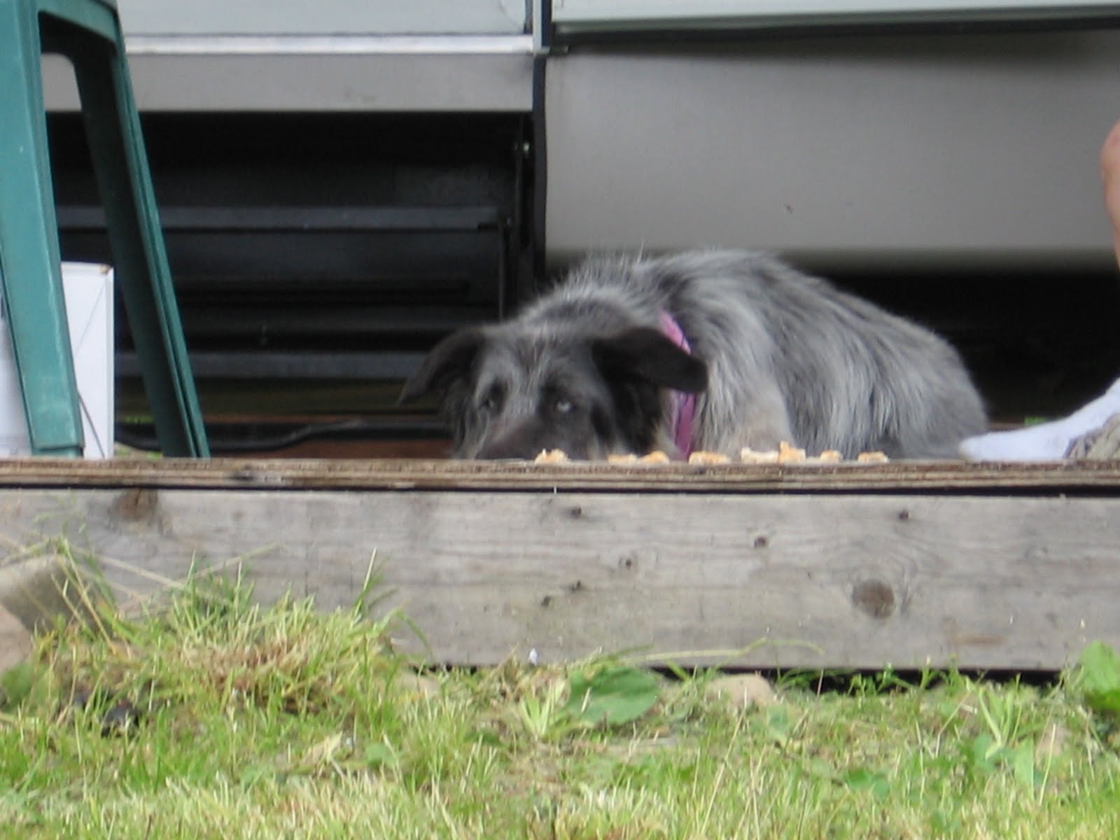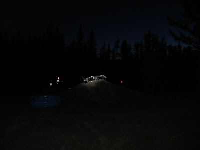 Dan took the lights and lined the pathway to the firepit and the second bathroom. As he is doing this I hear ."there's a little garter snake". Wholey flipping hell or something similar came out of my mouth. Being the loving husband that he is, he assured me the snake left. Alright, I will try to accept that and we carried on. Later that same afternoon I come out of the trailer with the dog to take her for a walk. I step down on the deck, have one foot on the driveway and Dan says "uh, nothing, just keep going". YEAH RIGHT, JUST KEEP GOING. Instinct says turn around and look - but that was really a dumb idea on my part. I screeched and cursed and made it to the middle of the driveway in less than one second. That damn snake was sunning itself on the deck. Once again Dan assured me it was gone. He then proceeded to take the dog down for a pee - leaving me standing in the middle of the driveway, too afraid to move. Fun times eh.