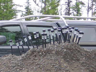 Since we did get some sunshine, which is seriously lacking here on the coast, we took the opportunity to charge up some solar lights. However, the set up looked like we were trying to send a message to aliens: